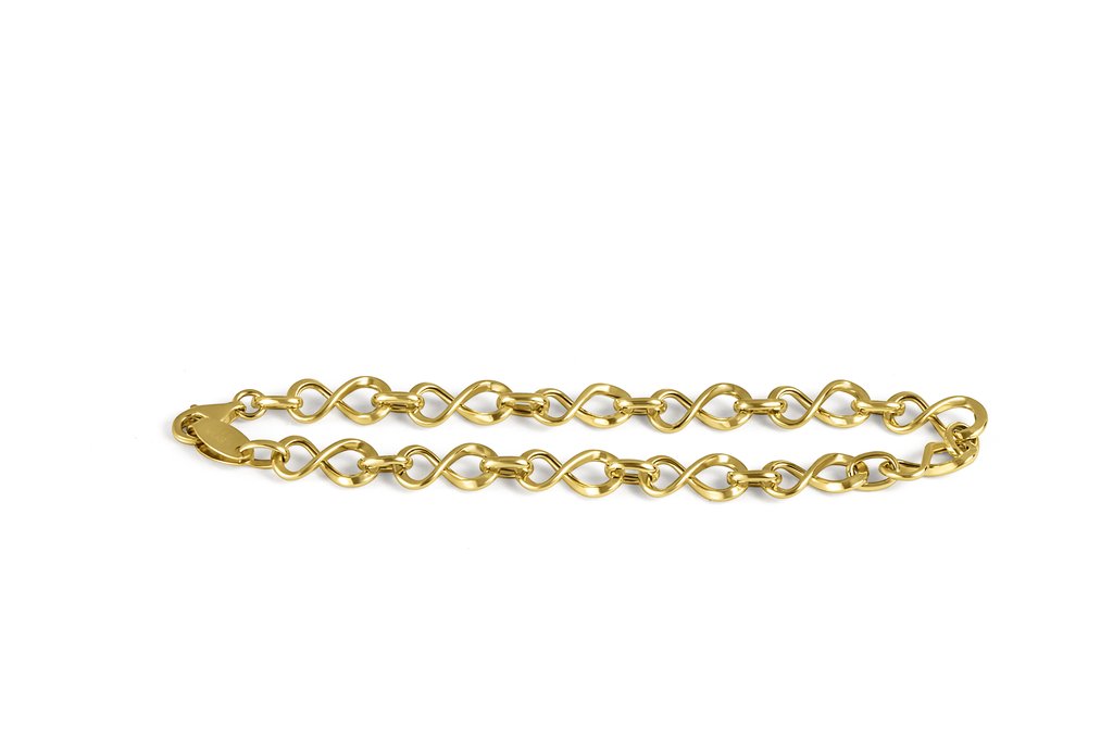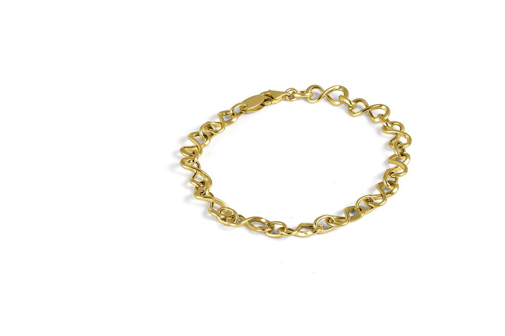 Adorn your wrist with this captivating bracelet, featuring a mesmerizing sequence of polished gold loops. Each link intertwines gracefully, creating an endless dance of elegance and charm. The lustrous finish and secure clasp make this piece both striking and practical.